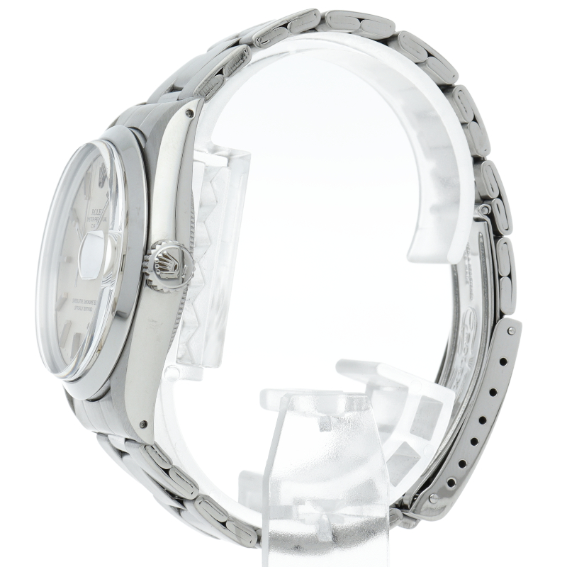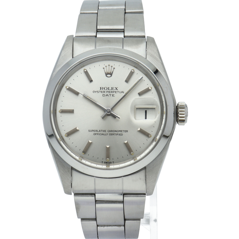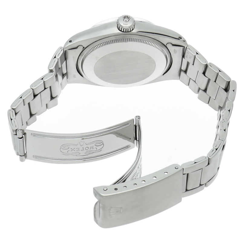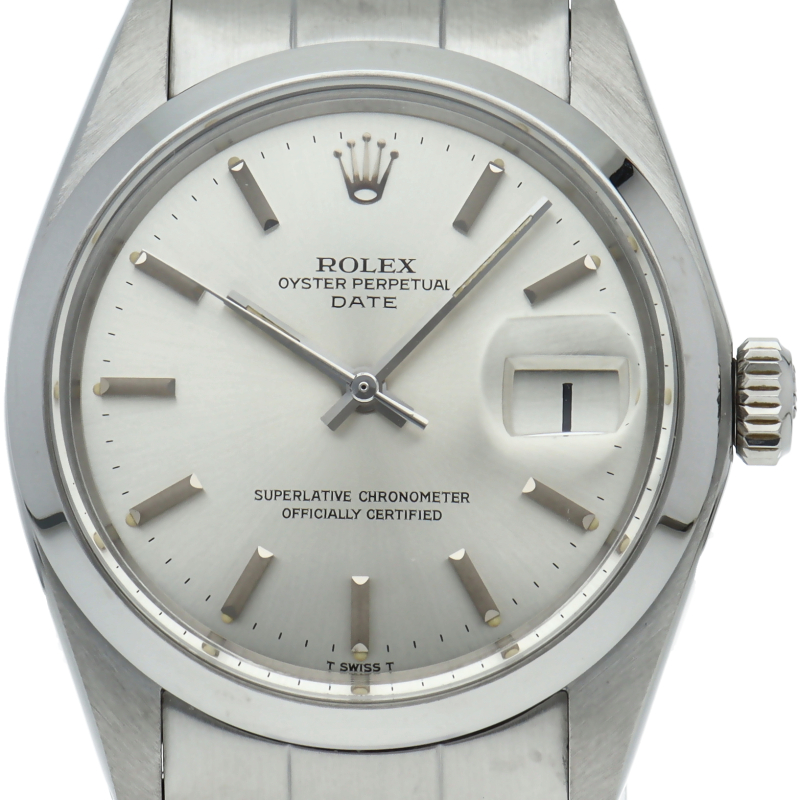 ロレックスの中でもシンプルな3針で時計本来の機能を追求した「オイスターパーペチュアルデイト」。洗練されたデザインはスタイルを選ばず使用できます。1960年代のアンティーク品です。6時位置にインデックス等に貴金属が使用されている事を表すシグママークが入った、希少性・高級感の非常に高い1本です。