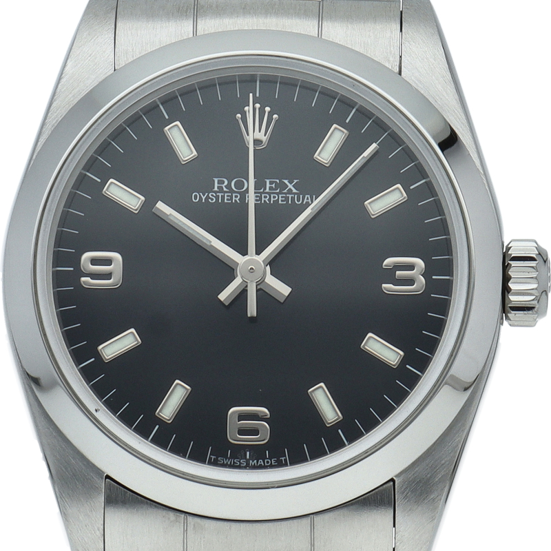 ロレックスの中でもシンプルな3針で時計本来の機能を追求した「オイスターパーペチュアル」。洗練されたデザインはスタイルを選ばず使用できます。