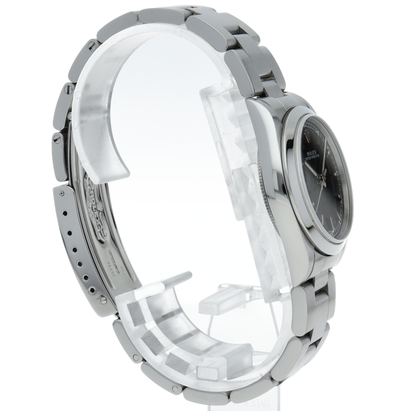 ロレックスの中でもシンプルな3針で時計本来の機能を追求した「オイスターパーペチュアル」。洗練されたデザインはスタイルを選ばず使用できます。