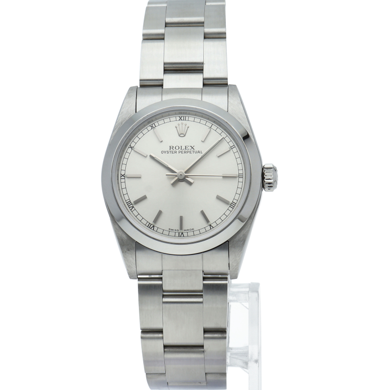 ロレックスの中でもシンプルな3針で時計本来の機能を追求した「オイスターパーペチュアル」。洗練されたデザインはスタイルを選ばず使用できます。