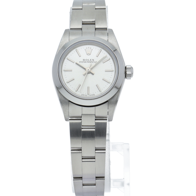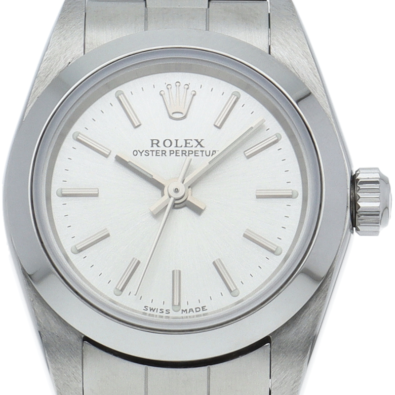 ロレックスの中でもシンプルな3針で時計本来の機能を追求した「オイスターパーペチュアル」。洗練されたデザインはスタイルを選ばず使用できます。