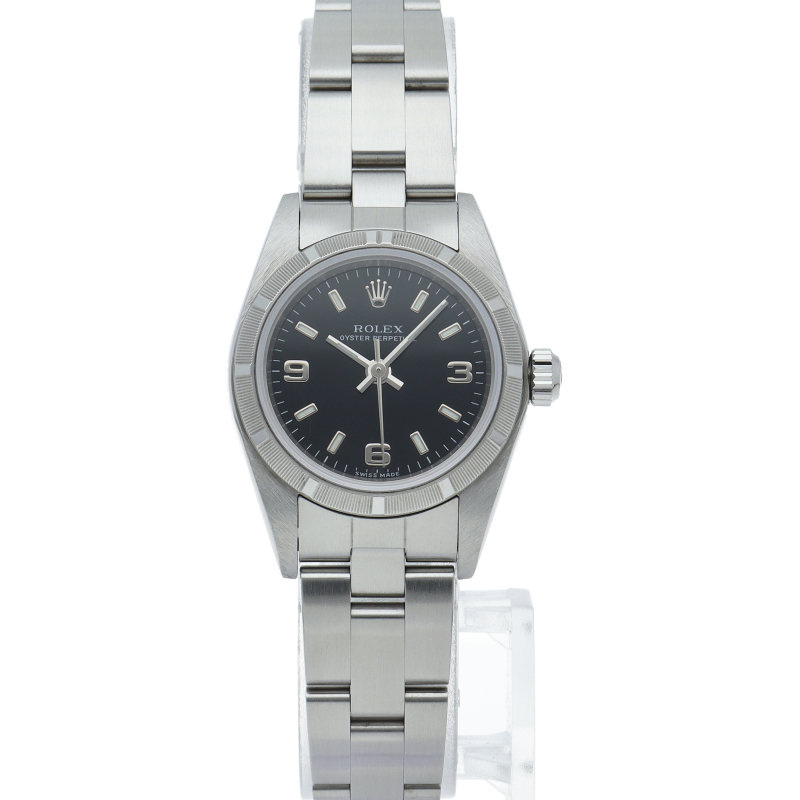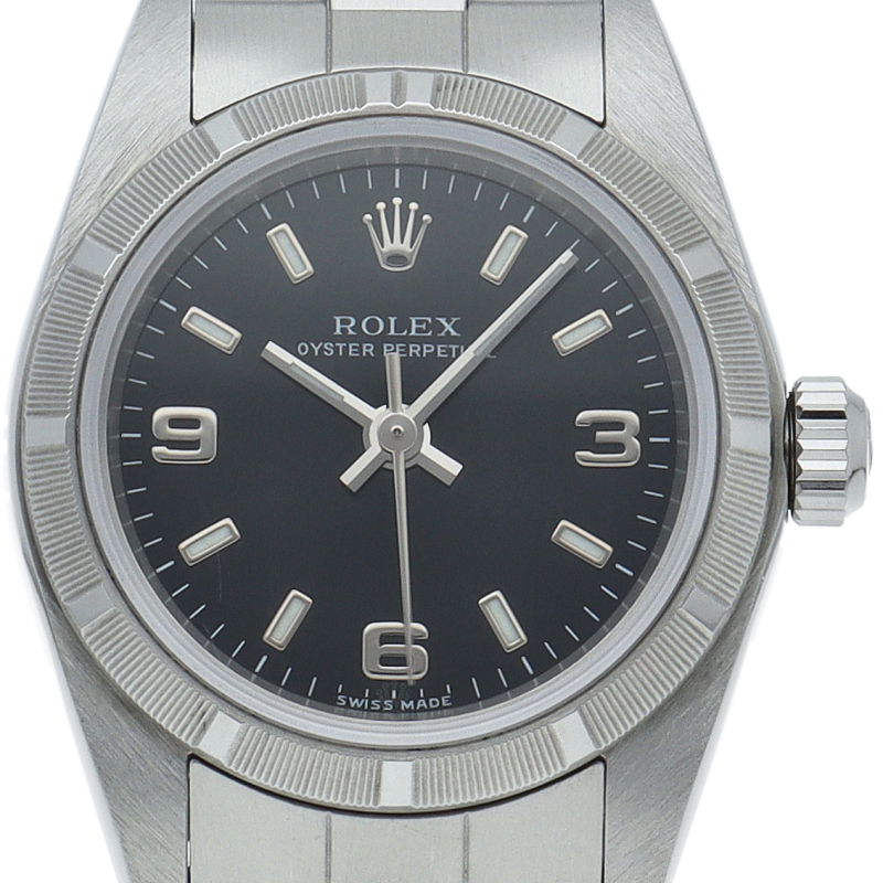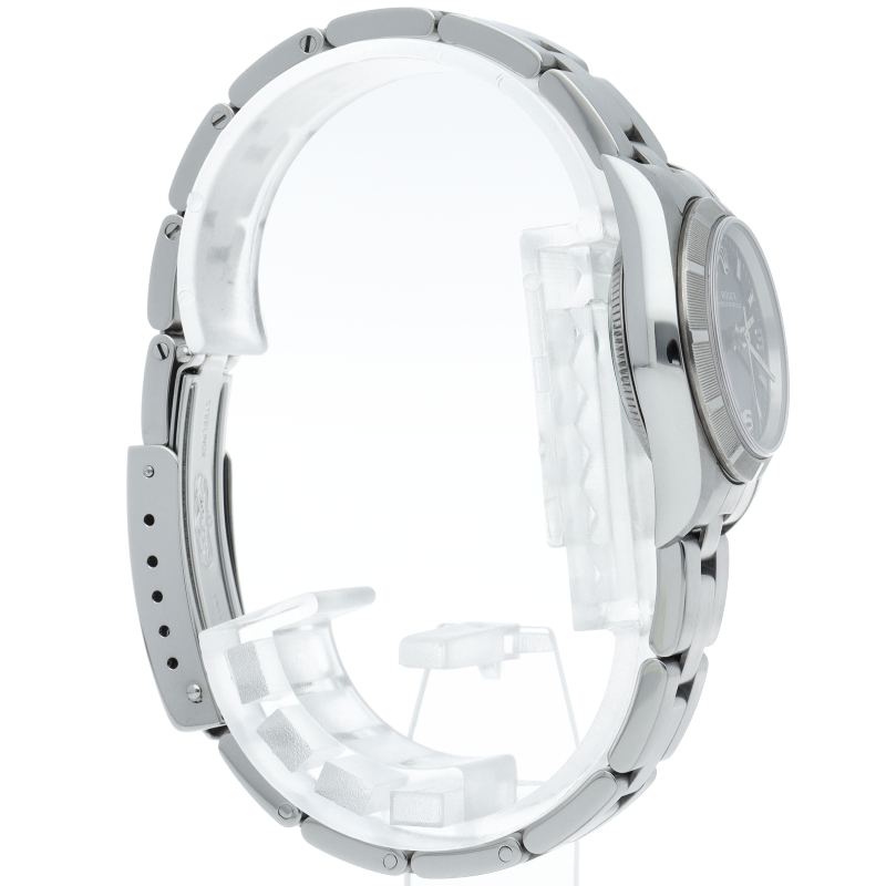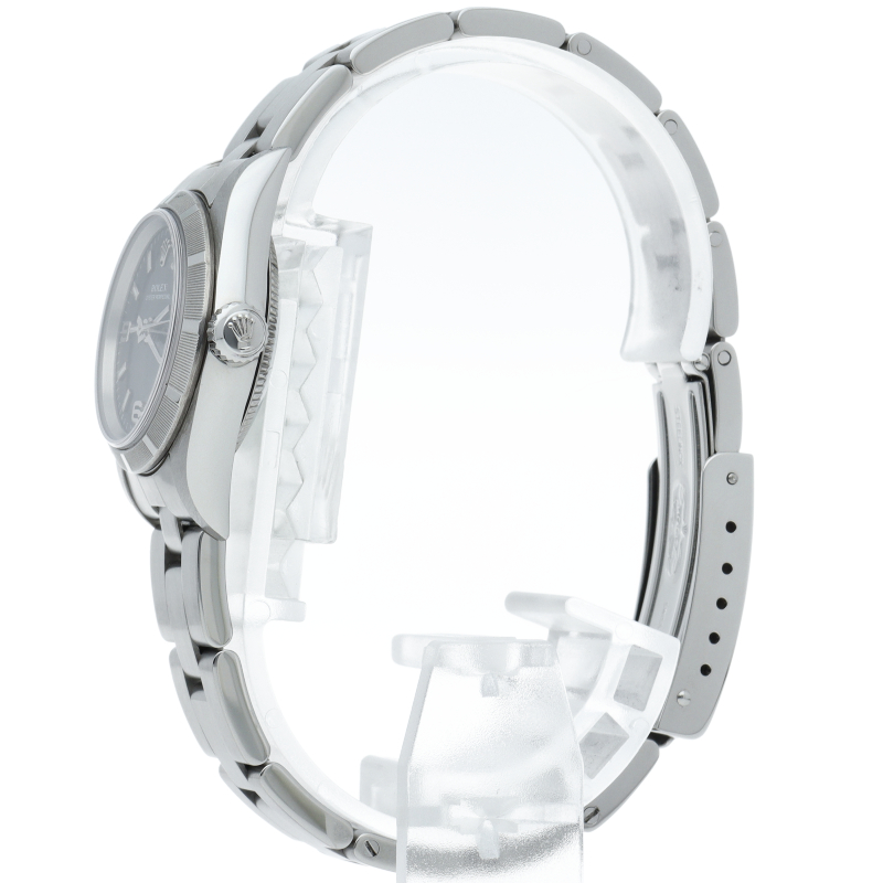 ロレックスの中でもシンプルな3針で時計本来の機能を追求した「オイスターパーペチュアル」。洗練されたデザインはスタイルを選ばず使用できます。ファインリーエンジンターンドベゼル仕様。