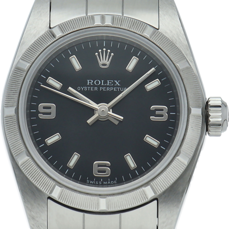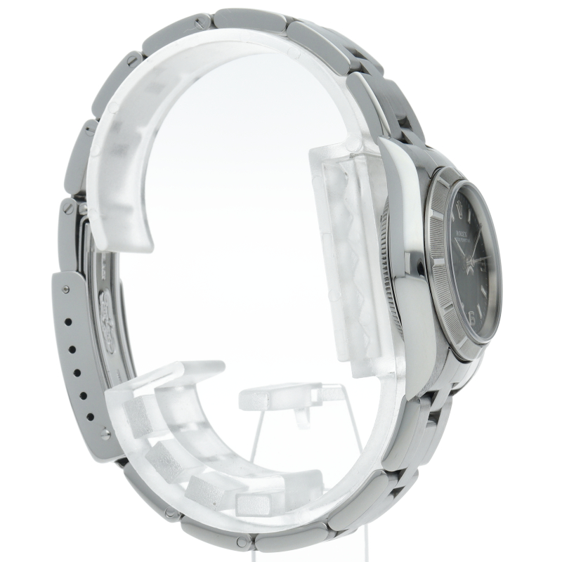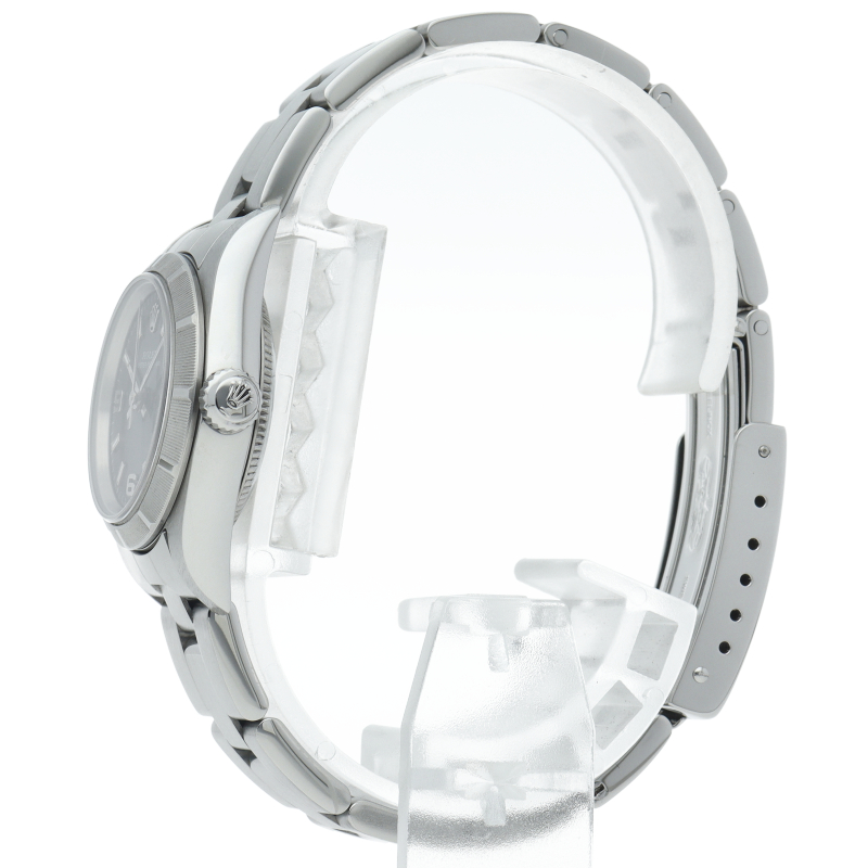 ロレックスの中でもシンプルな3針で時計本来の機能を追求した「オイスターパーペチュアル」。洗練されたデザインはスタイルを選ばず使用できます。ファインリーエンジンターンドベゼル仕様。