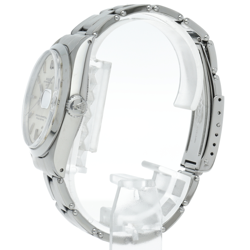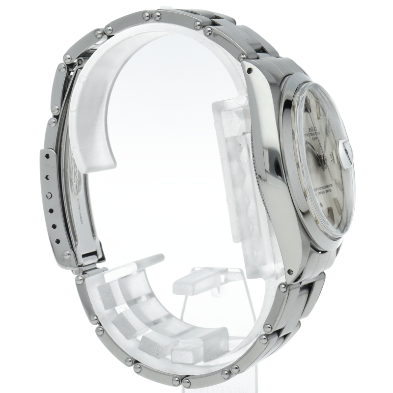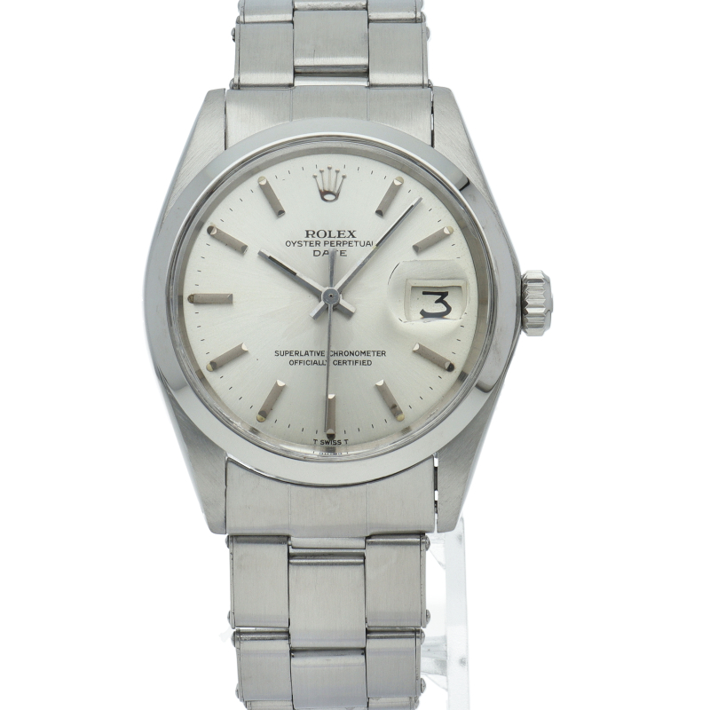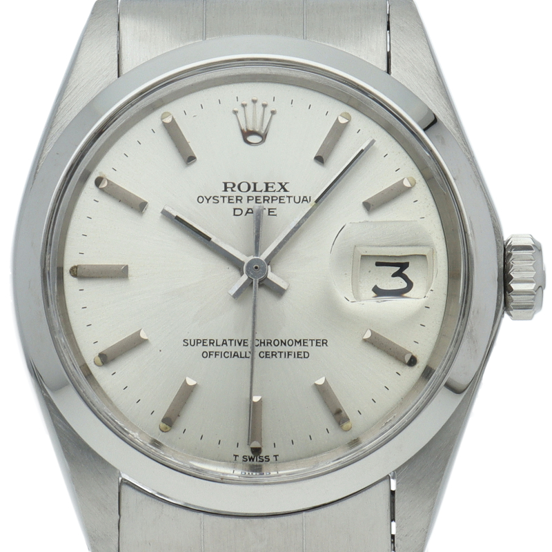 ロレックスの中でもシンプルな3針で時計本来の機能を追求した「オイスターパーペチュアルデイト」。洗練されたデザインはスタイルを選ばず使用できます。1960年代のアンティーク品です。6時位置にインデックス等に貴金属が使用されている事を表すシグママークが入った、希少性・高級感の非常に高い1本です。