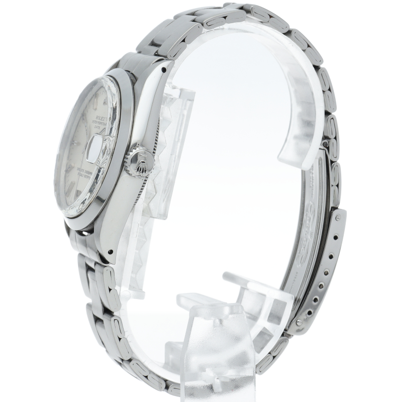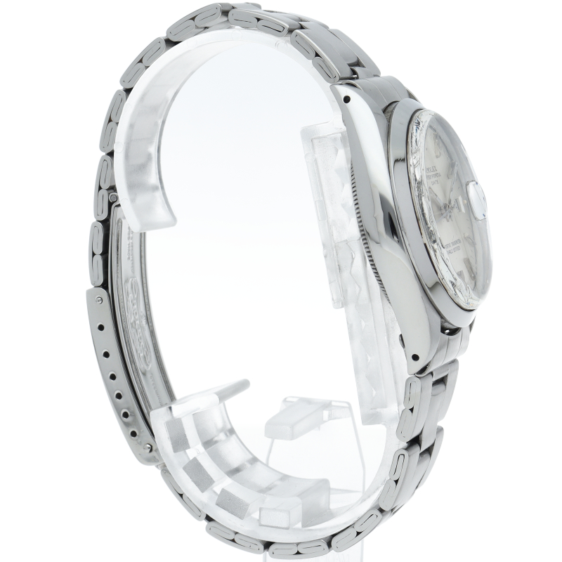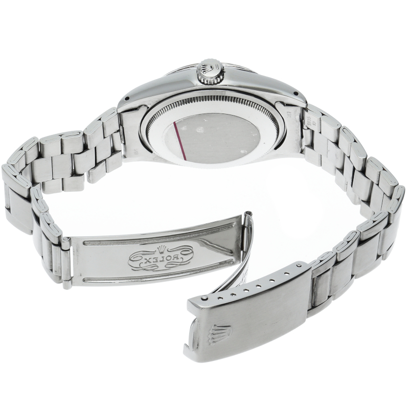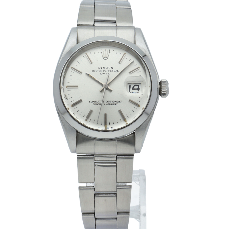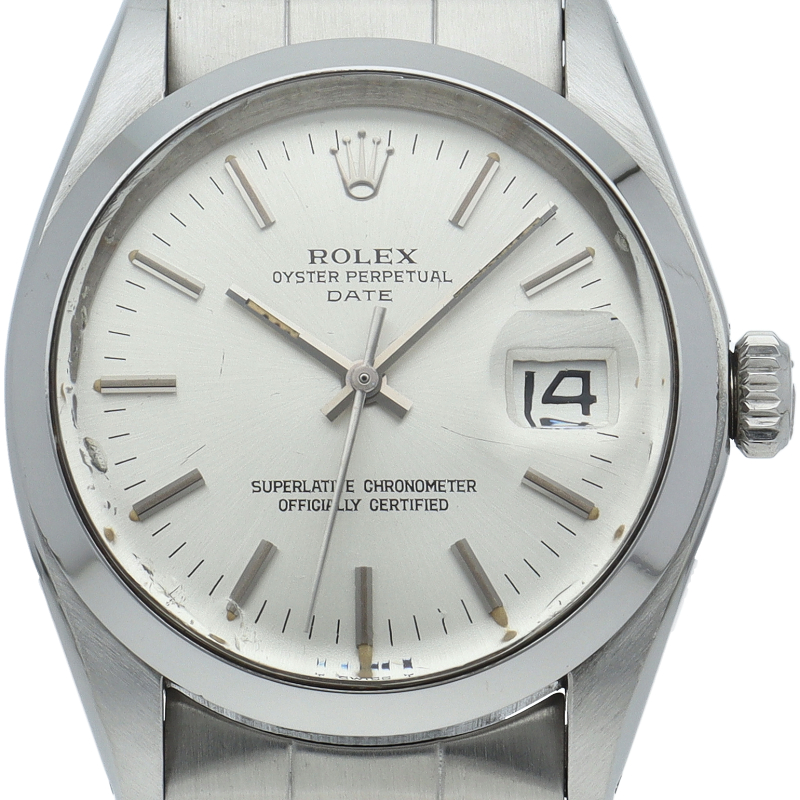 ロレックスの中でもシンプルな3針で時計本来の機能を追求した「オイスターパーペチュアルデイト」。洗練されたデザインはスタイルを選ばず使用できます。1960年代のアンティーク品です。6時位置にインデックス等に貴金属が使用されている事を表すシグママークが入った、希少性・高級感の非常に高い1本です。