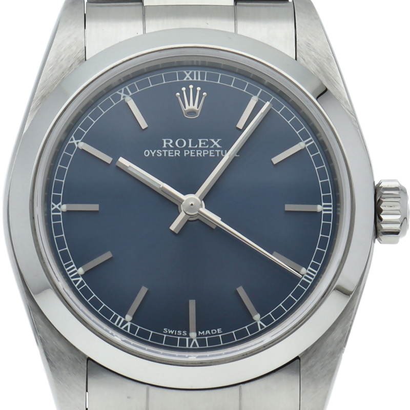 ロレックスの中でもシンプルな3針で時計本来の機能を追求した「オイスターパーペチュアル」。洗練されたデザインはスタイルを選ばず使用できます。
