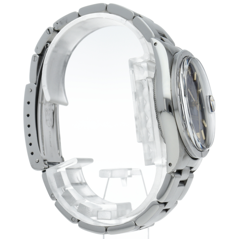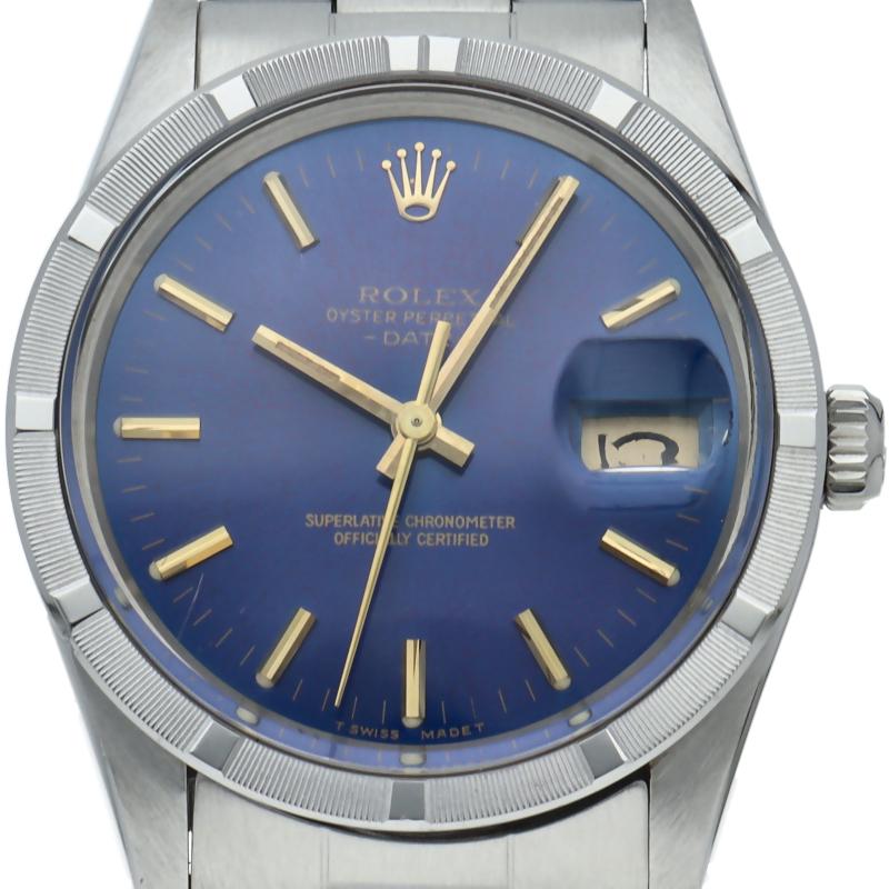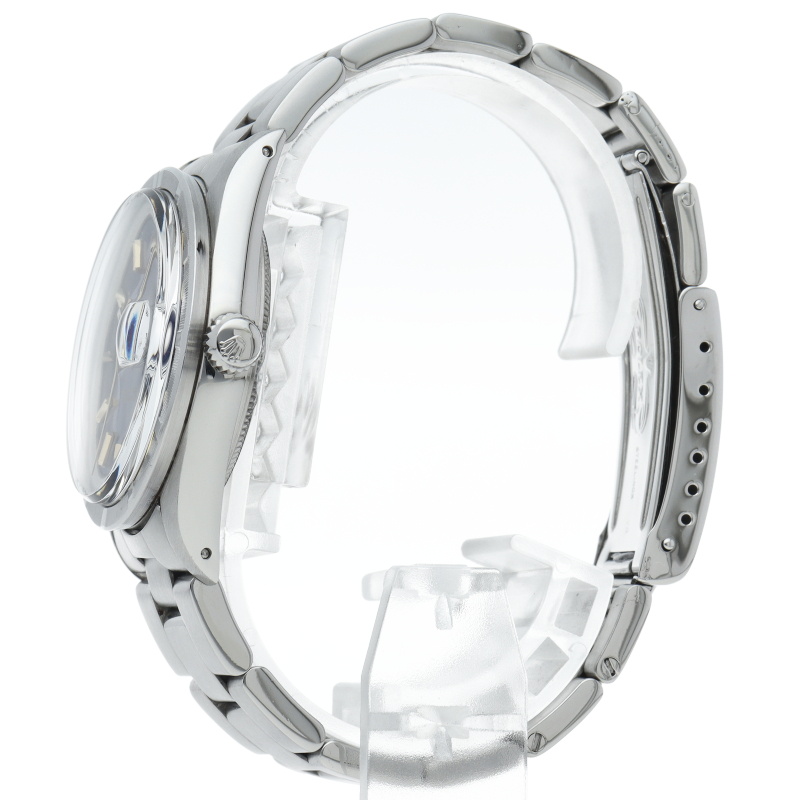 ロレックスの中でもシンプルな3針で時計本来の機能を追求した「オイスターパーペチュアルデイト」。洗練されたデザインはスタイルを選ばず使用できます。文字盤はレッドアイダイヤルで、非常に希少なダイヤルです。ルーペで見ると赤色の粒子が確認できます。