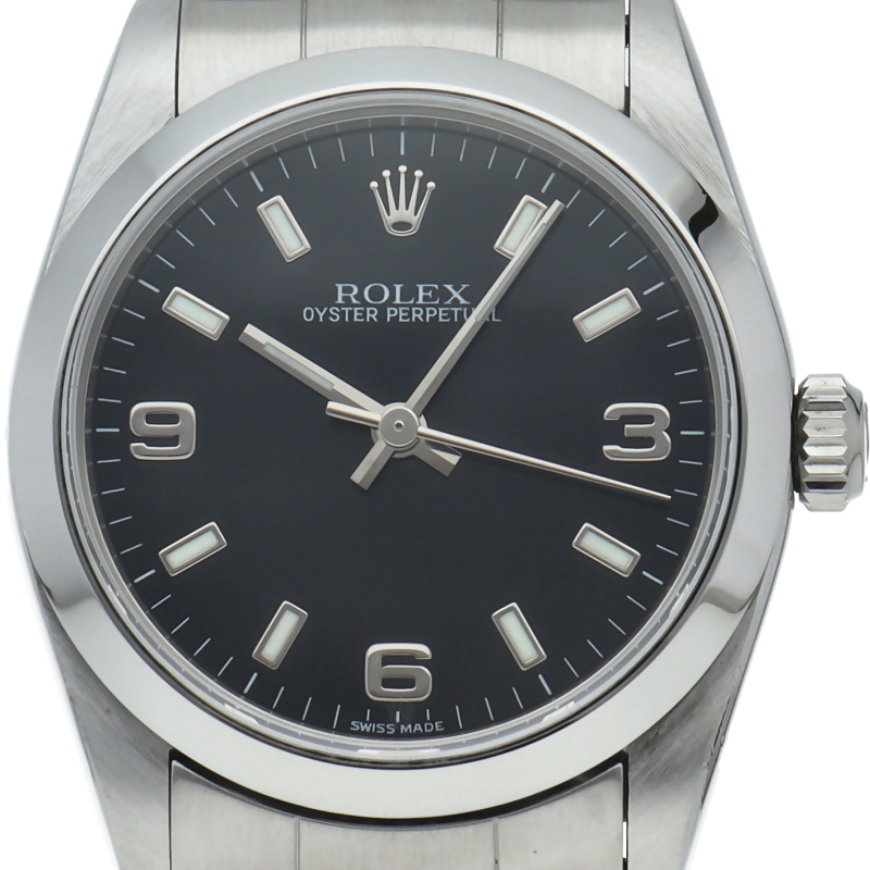 ロレックスの中でもシンプルな3針で時計本来の機能を追求した「オイスターパーペチュアル」。洗練されたデザインはスタイルを選ばず使用できます。