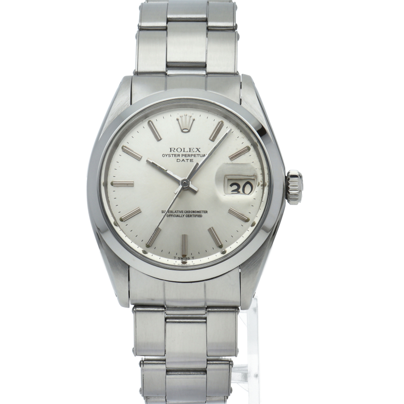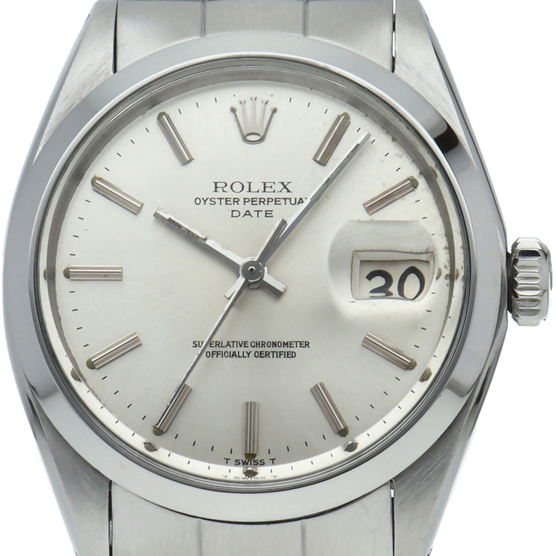 ロレックスのヴィンテージ定番「オイスターパーペチュアルデイト」Ref.1500。アンティーク特有のプラスチック風防の温かみある質感と、34mmの絶妙なサイズ感が魅力です。内部には耐久性と精度で伝説的な名機Cal.1570を搭載。半世紀を経ても色褪せないクラシカルなデザインは、初めてのヴィンテージロレックスとしても最適な傑作です。