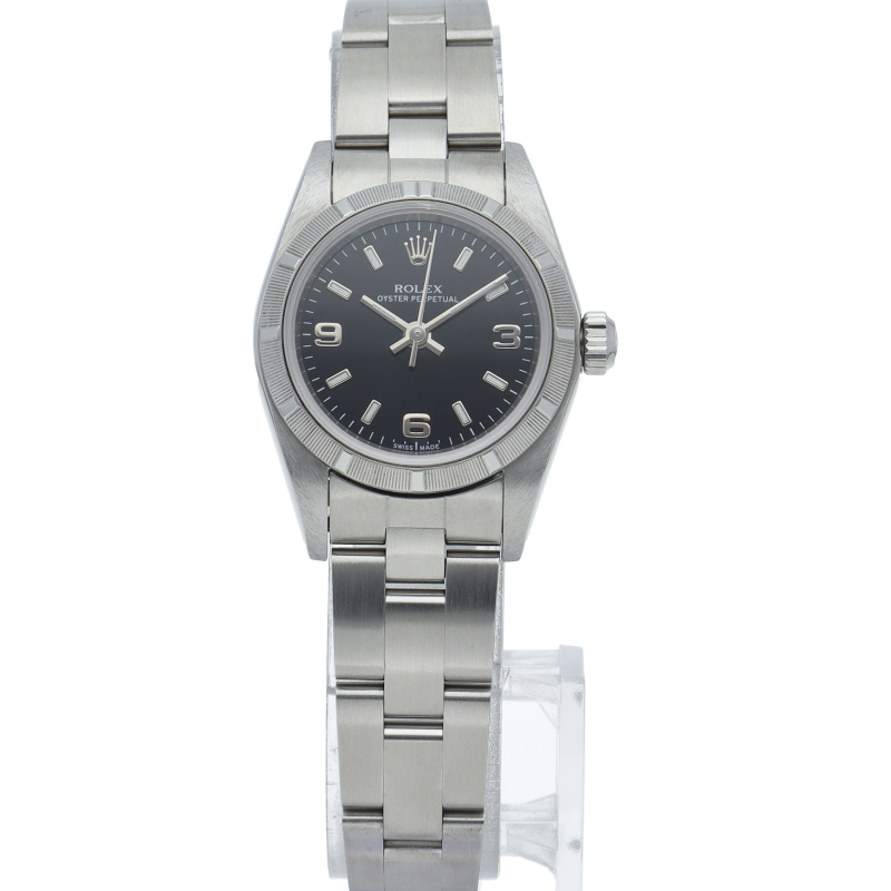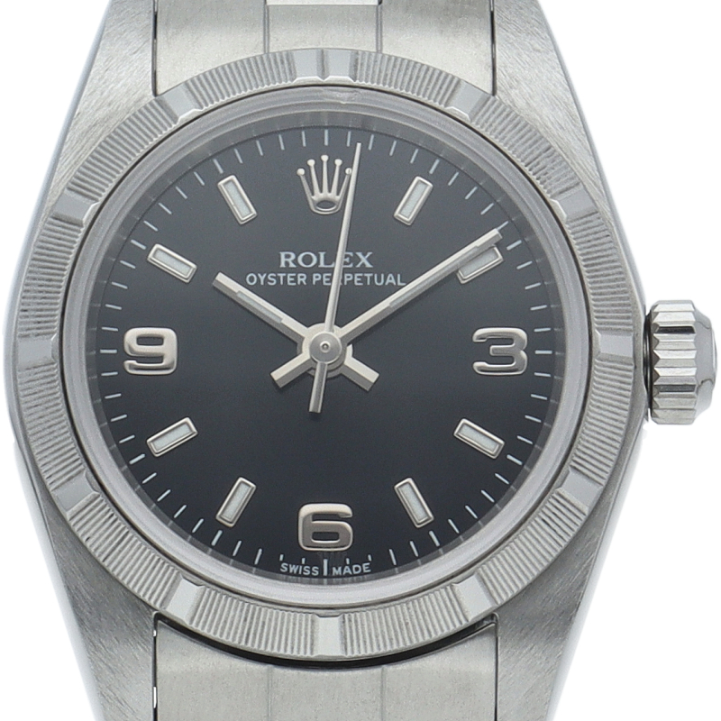 ロレックスの中でもシンプルな3針で時計本来の機能を追求した「オイスターパーペチュアル」。洗練されたデザインはスタイルを選ばず使用できます。ファインリーエンジンターンドベゼル仕様。