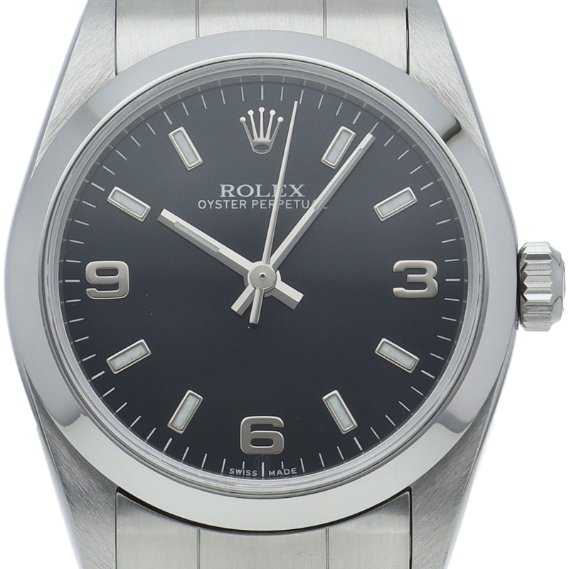 ロレックスの中でもシンプルな3針で時計本来の機能を追求した「オイスターパーペチュアル」。洗練されたデザインはスタイルを選ばず使用できます。