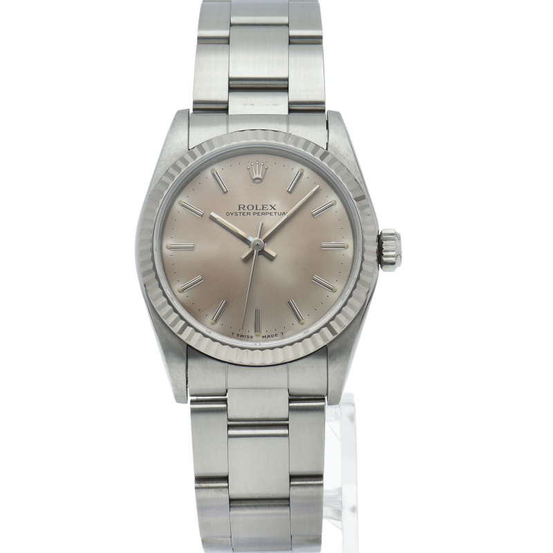 ロレックスの中でもシンプルな3針で時計本来の機能を追求した「オイスターパーペチュアル」。洗練されたデザインはスタイルを選ばず使用できます。