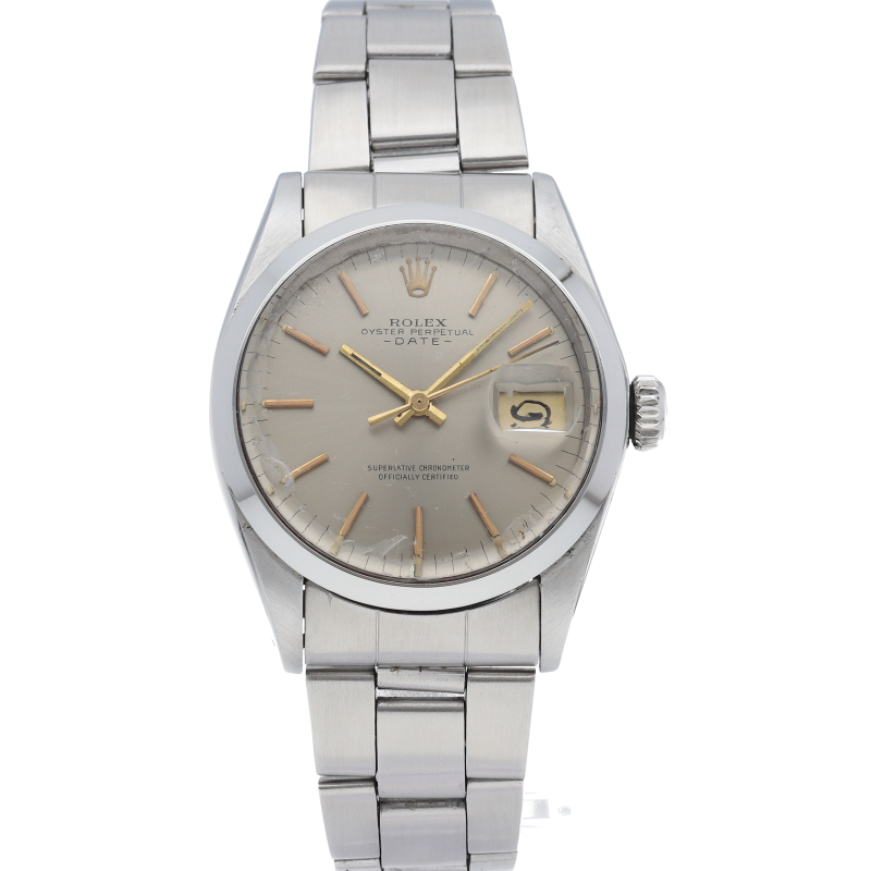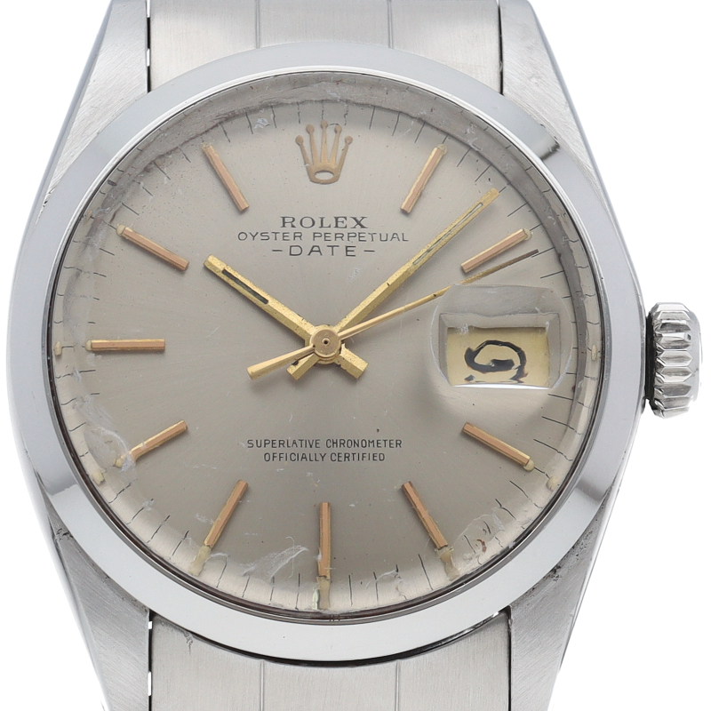ロレックスのヴィンテージ定番「オイスターパーペチュアルデイト」Ref.1500。アンティーク特有のプラスチック風防の温かみある質感と、34mmの絶妙なサイズ感が魅力です。内部には耐久性と精度で伝説的な名機Cal.1570を搭載。半世紀を経ても色褪せないクラシカルなデザインは、初めてのヴィンテージロレックスとしても最適な傑作です。