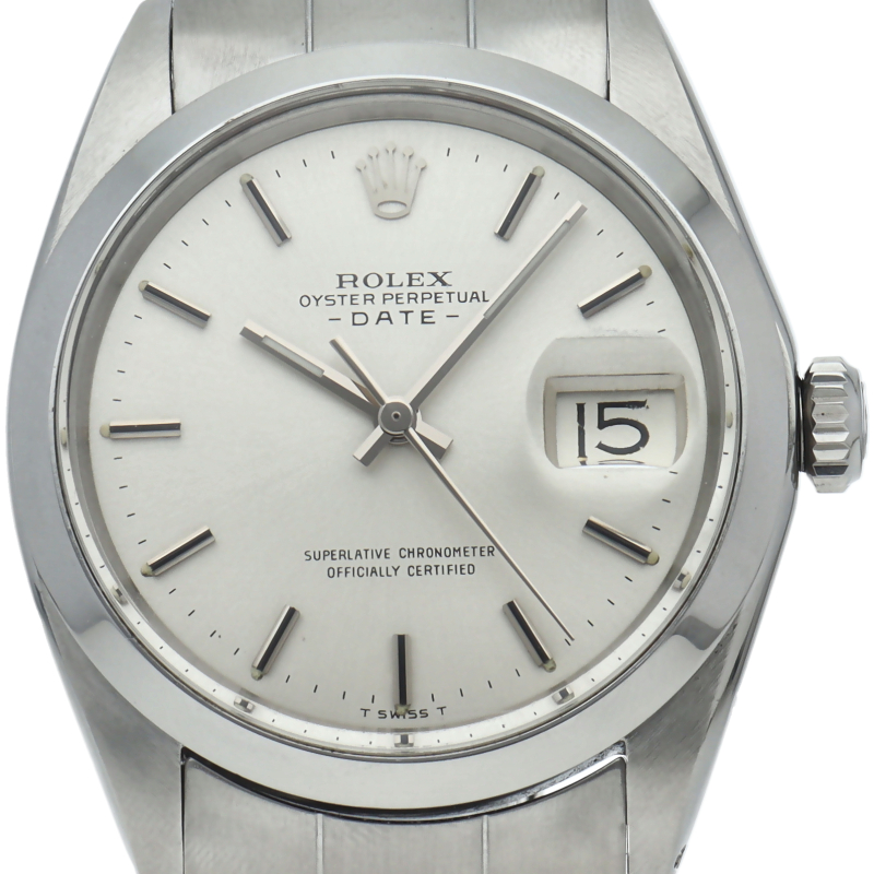 ロレックスのヴィンテージ定番「オイスターパーペチュアルデイト」Ref.1500。アンティーク特有のプラスチック風防の温かみある質感と、34mmの絶妙なサイズ感が魅力です。内部には耐久性と精度で伝説的な名機Cal.1570を搭載。半世紀を経ても色褪せないクラシカルなデザインは、初めてのヴィンテージロレックスとしても最適な傑作です。