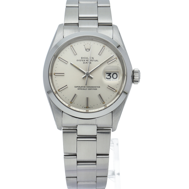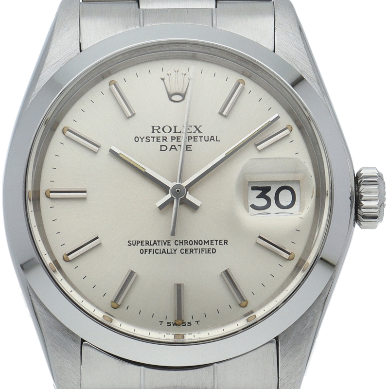 ロレックスのヴィンテージ定番「オイスターパーペチュアルデイト」Ref.1500。アンティーク特有のプラスチック風防の温かみある質感と、34mmの絶妙なサイズ感が魅力です。内部には耐久性と精度で伝説的な名機Cal.1570を搭載。半世紀を経ても色褪せないクラシカルなデザインは、初めてのヴィンテージロレックスとしても最適な傑作です。