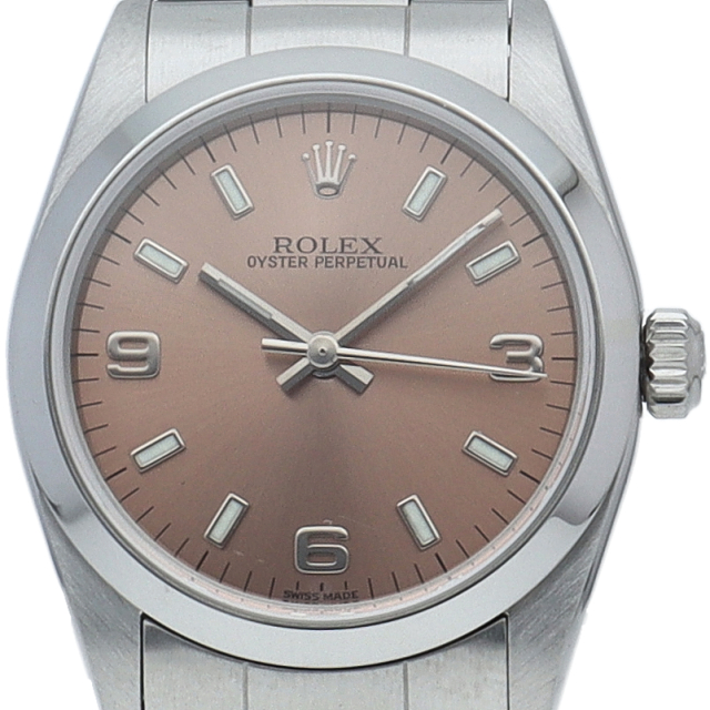 ロレックスの中でもシンプルな3針で時計本来の機能を追求した「オイスターパーペチュアル」。洗練されたデザインはスタイルを選ばず使用できます。