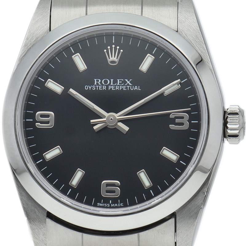 ロレックスの中でもシンプルな3針で時計本来の機能を追求した「オイスターパーペチュアル」。洗練されたデザインはスタイルを選ばず使用できます。