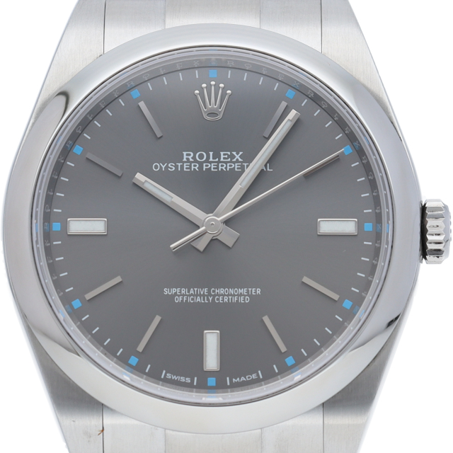 ロレックスの中でもシンプルな3針で時計本来の機能を追求した「オイスターパーペチュアル」。2020年にモデルチェンジにともない、生産終了となり人気の高いダークロジウム文字盤はこれからが楽しみです。