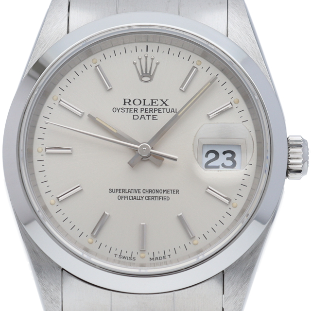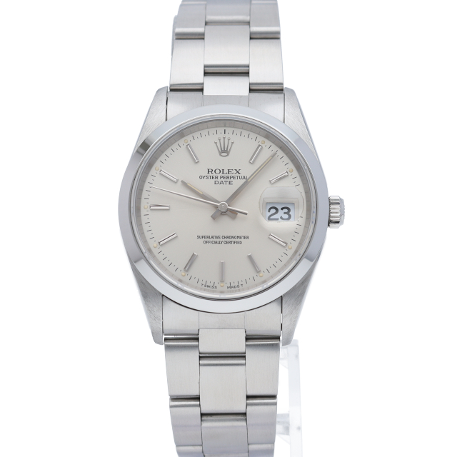 ロレックスのデイリーウォッチとして人気の「オイスターデイト」。デイト表示機能付でビジネスからカジュアルまでスタイルを選ばないデザインが魅力です。