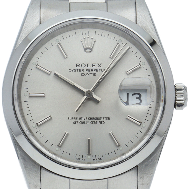 ロレックスのデイリーウォッチとして人気の「オイスターデイト」。デイト表示機能付でビジネスからカジュアルまでスタイルを選ばないデザインが魅力です。