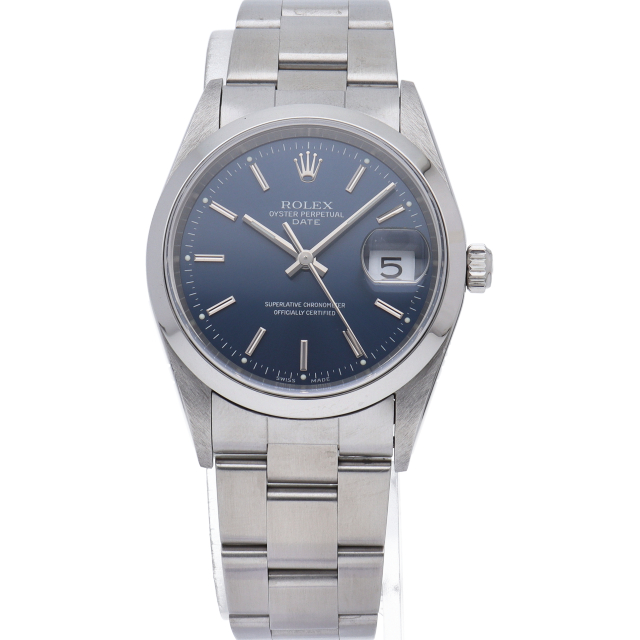 ロレックスのデイリーウォッチとして人気の「オイスターデイト」。デイト表示機能付でビジネスからカジュアルまでスタイルを選ばないデザインが魅力です。