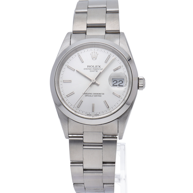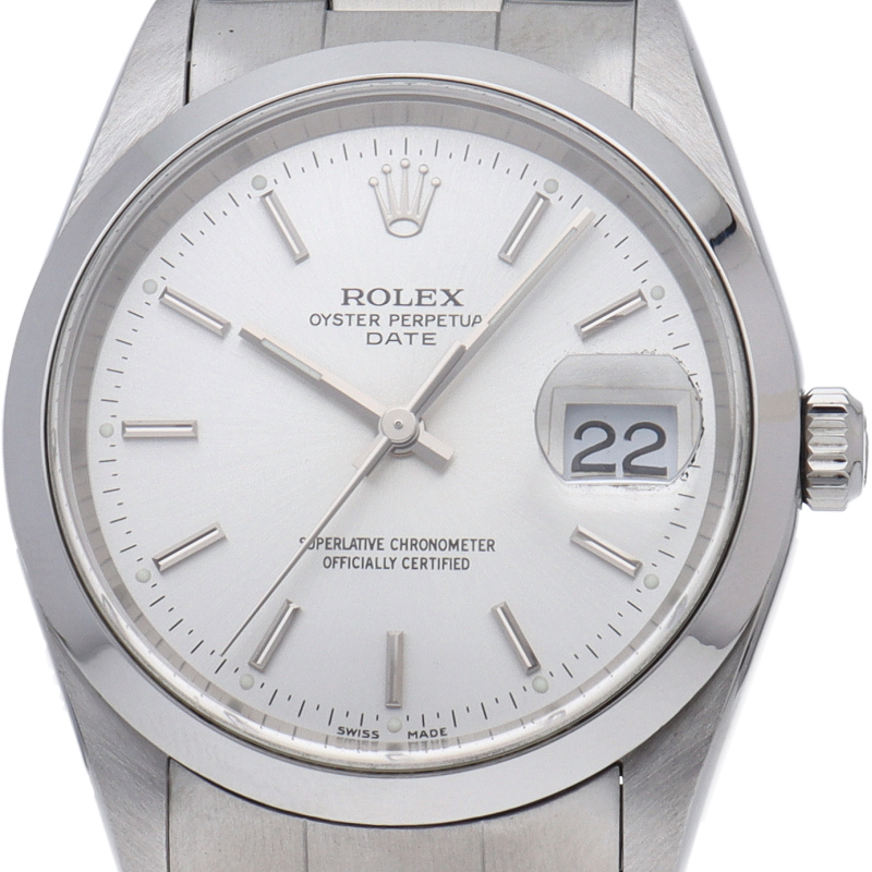 ロレックスのデイリーウォッチとして人気の「オイスターデイト」。デイト表示機能付でビジネスからカジュアルまでスタイルを選ばないデザインが魅力です。