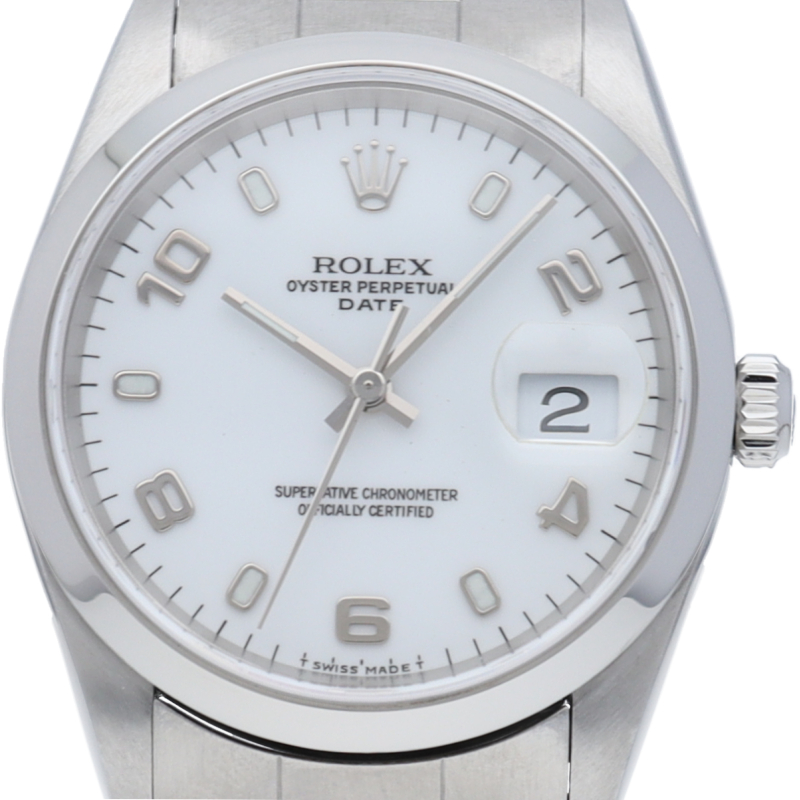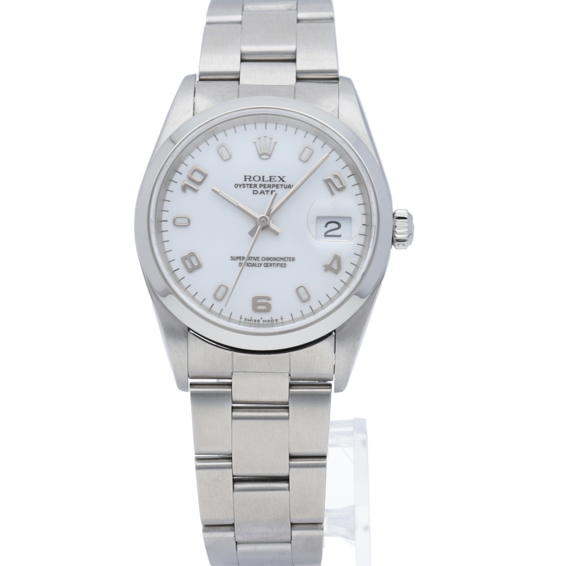 ロレックスのデイリーウォッチとして人気の「オイスターデイト」。デイト表示機能付でビジネスからカジュアルまでスタイルを選ばないデザインが魅力です。