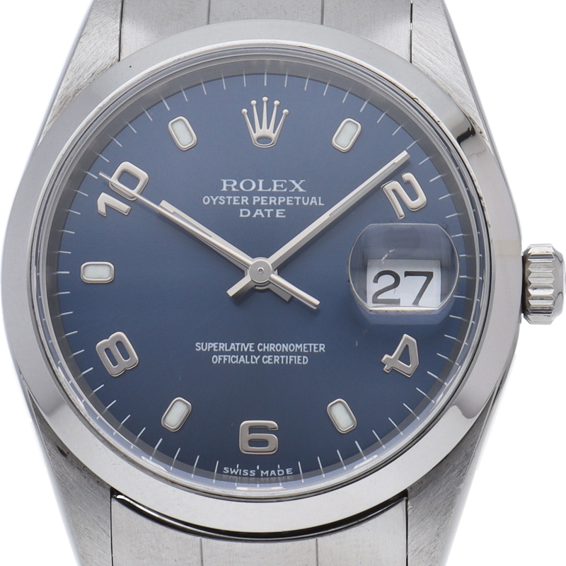 ロレックスのデイリーウォッチとして人気の「オイスターパーペチュアルデイト」。ビジネスからカジュアルまでスタイルを選ばないデザインが魅力です。