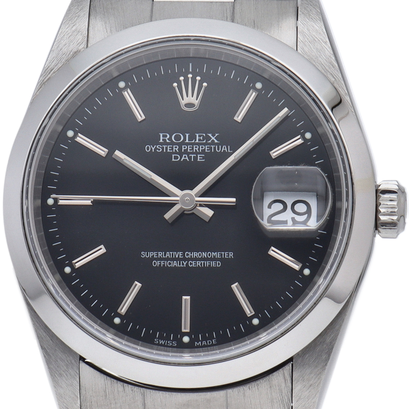 ロレックスのデイリーウォッチとして人気の「オイスター・デイト」。デイト表示機能付でビジネスからカジュアルまでスタイルを選ばないデザインが魅力です。