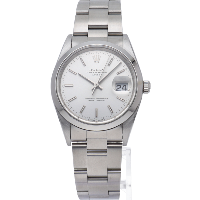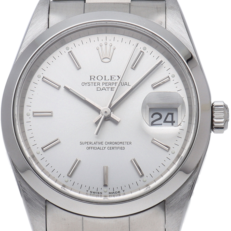 ロレックスのデイリーウォッチとして人気の「オイスターデイト」。デイト表示機能付でビジネスからカジュアルまでスタイルを選ばないデザインが魅力です。