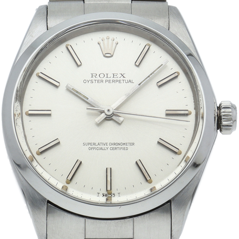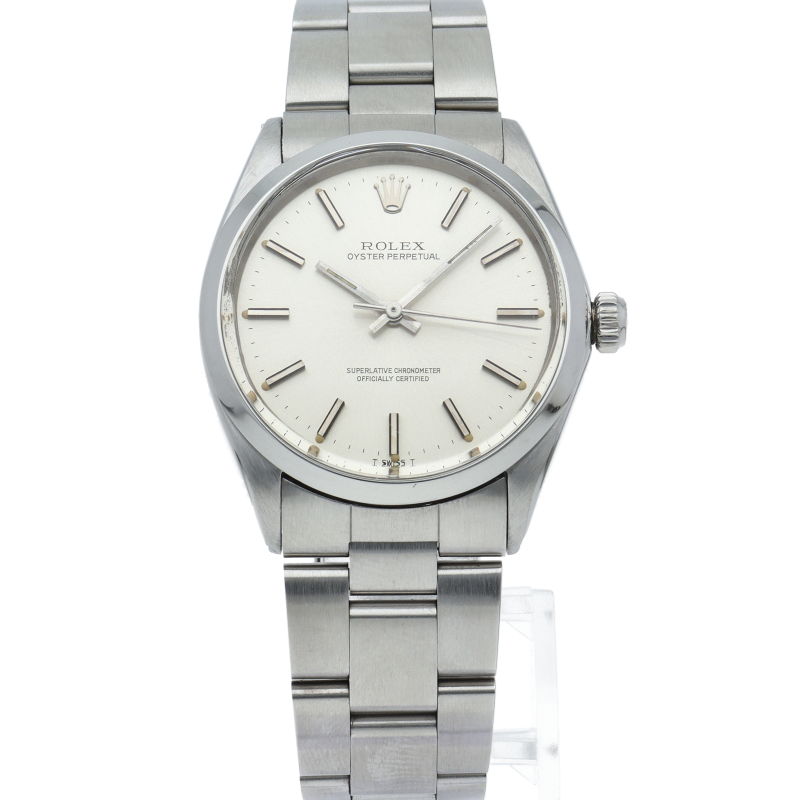 ロレックスならではのアンティーク感が特徴的な1002です。ケースサイズも34mmで現代にない新鮮さが特徴的な1本です。サイズ的には女性にもオススメです。