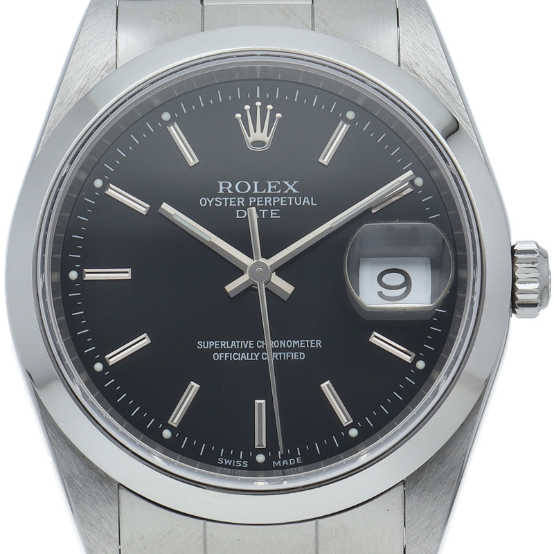 ロレックスのデイリーウォッチとして人気の「オイスター・デイト」。デイト表示機能付でビジネスからカジュアルまでスタイルを選ばないデザインが魅力です。