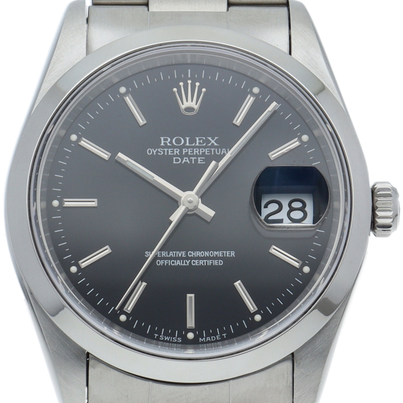 ロレックスのデイリーウォッチとして人気の「オイスター・デイト」。デイト表示機能付でビジネスからカジュアルまでスタイルを選ばないデザインが魅力です。