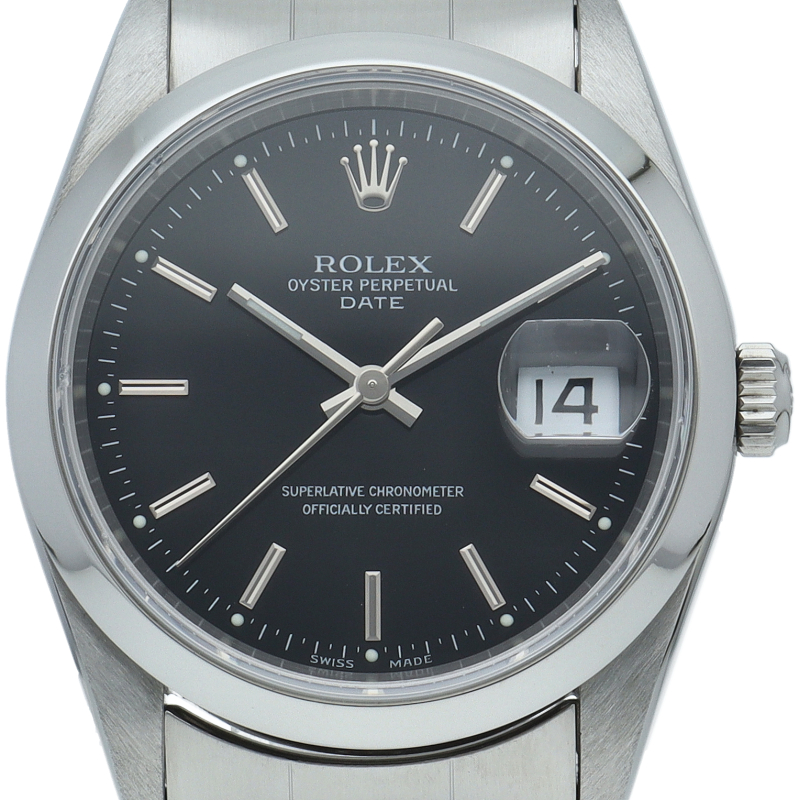 ロレックスのデイリーウォッチとして人気の「オイスター・デイト」。デイト表示機能付でビジネスからカジュアルまでスタイルを選ばないデザインが魅力です。