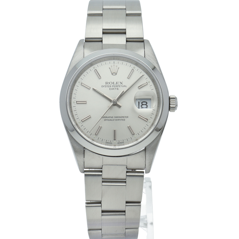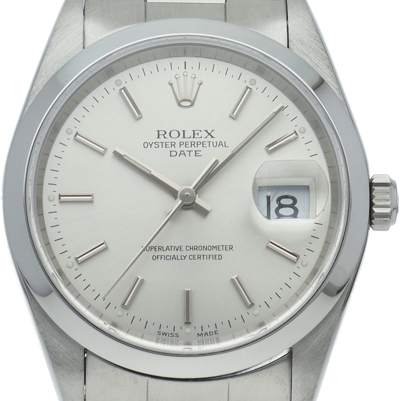 ロレックスのデイリーウォッチとして人気の「オイスターデイト」。デイト表示機能付でビジネスからカジュアルまでスタイルを選ばないデザインが魅力です。