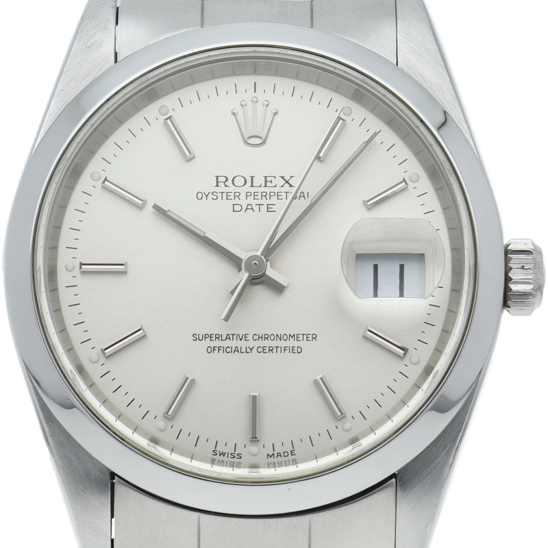 ロレックスのデイリーウォッチとして人気の「オイスター・デイト」。デイト表示機能付でビジネスからカジュアルまでスタイルを選ばないデザインが魅力です。