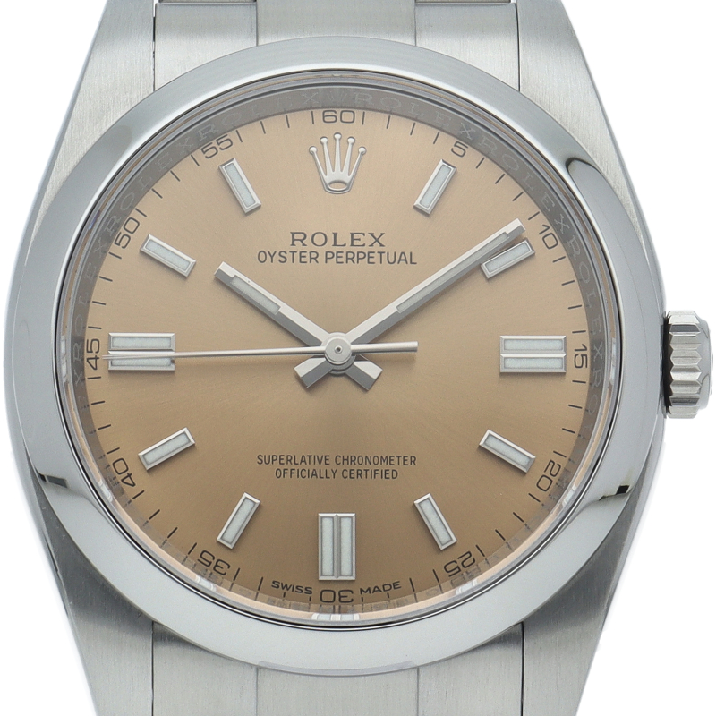 ロレックスの中でもシンプルな3針で時計本来の機能を追求した「オイスターパーペチュアル」。洗練されたデザインはスタイルを選ばず使用できます。