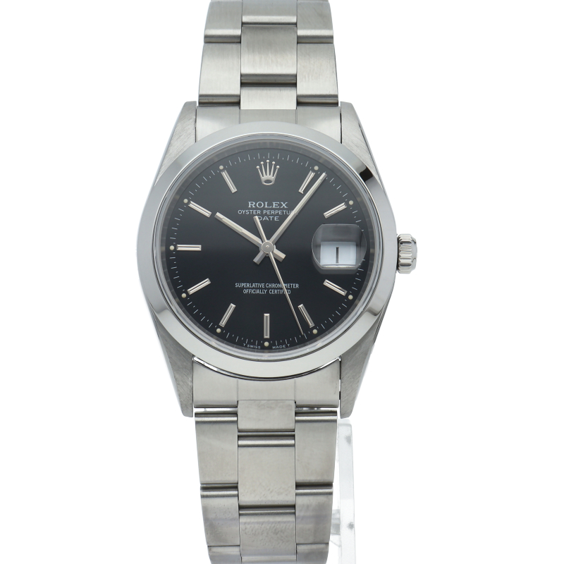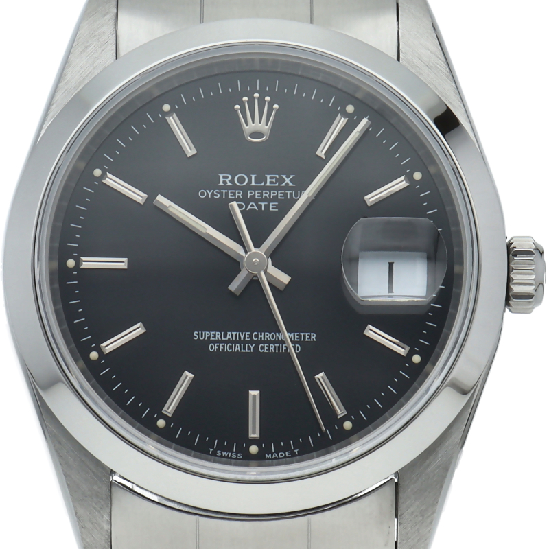 ロレックスのデイリーウォッチとして人気の「オイスターデイト」。デイト表示機能付でビジネスからカジュアルまでスタイルを選ばないデザインが魅力です。