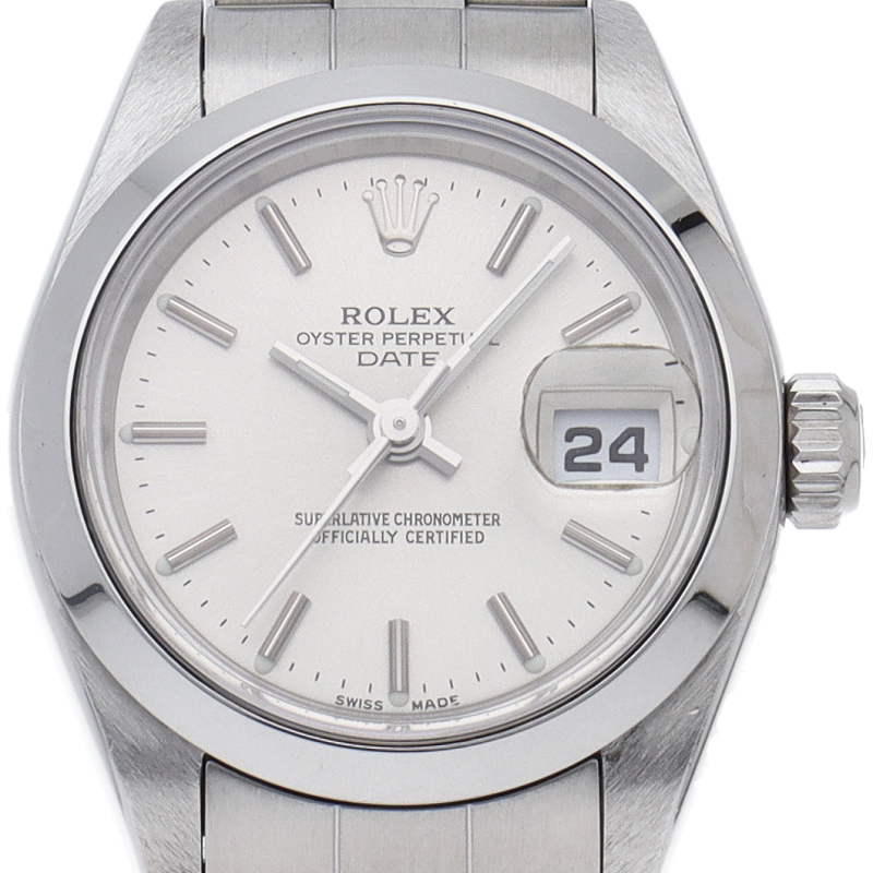 ロレックスのデイリーウォッチとして人気の「オイスター・デイト」。デイト表示機能付でビジネスからカジュアルまでスタイルを選ばないデザインが魅力です。