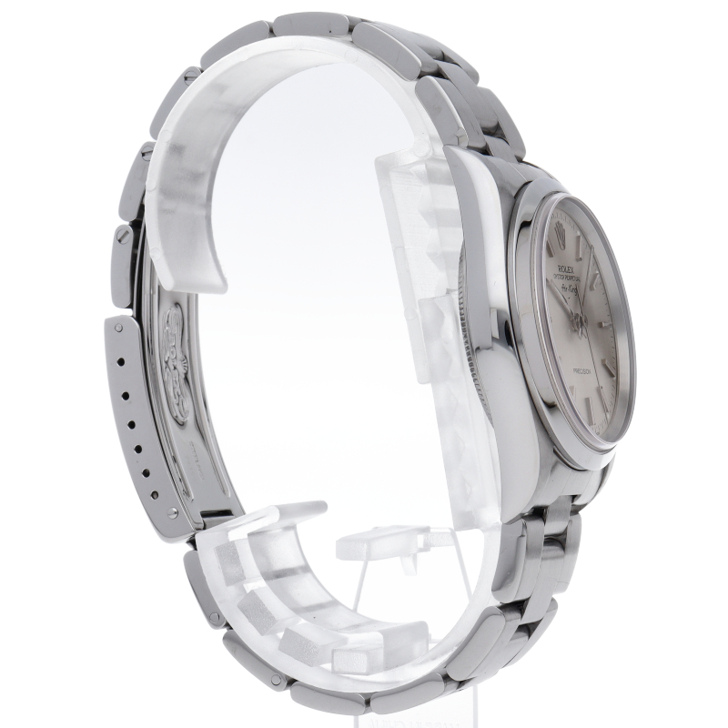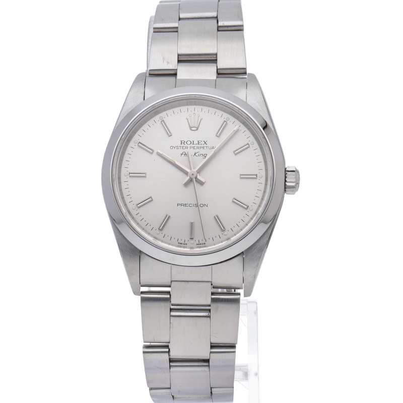 ロレックスの中でもシンプルでオーソドックなデザインが人気の「エアキング」。時計本来の性能を追求し、スタイルを選ばず使用できます。