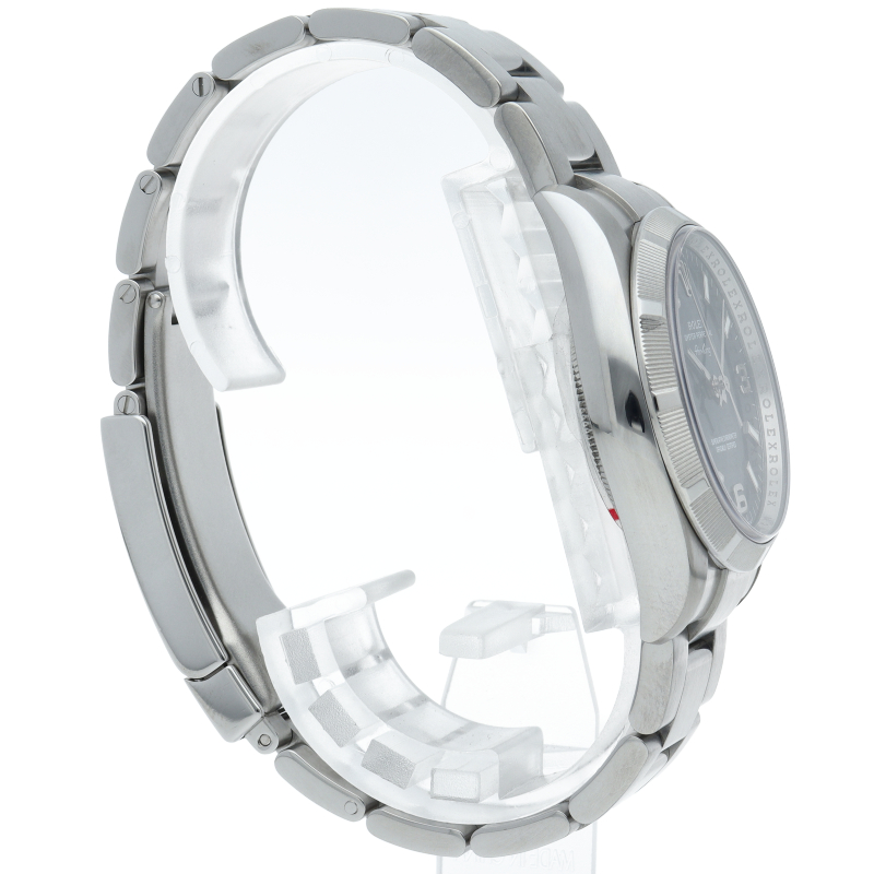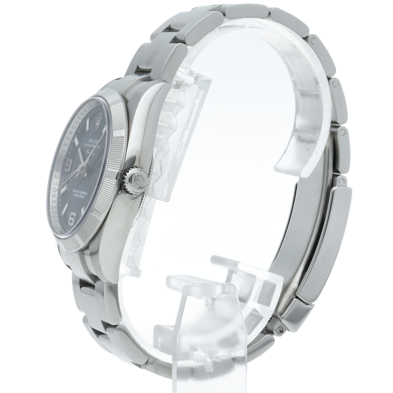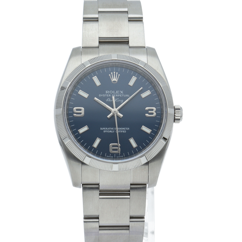 ロレックスの中でもシンプルな3針で時計本来の機能を追求した「エアキング」。すでに廃盤となりましたが、程よいサイズ感が人気のモデルです。