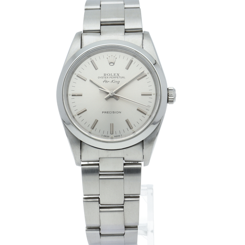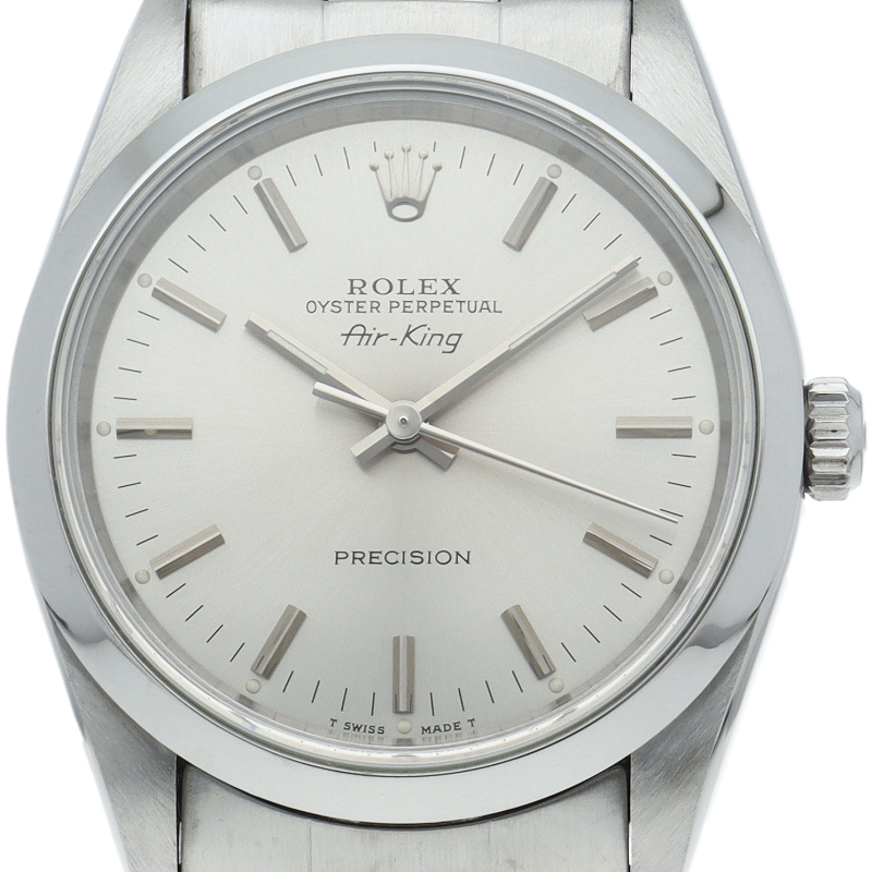 ロレックスの中でもシンプルでオーソドックなデザインが人気の「エアキング」。時計本来の性能を追求し、スタイルを選ばず使用できます。