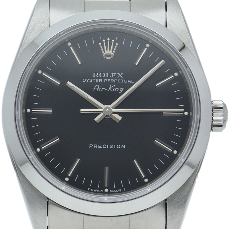 ロレックスの中でもシンプルでオーソドックなデザインが人気の「エアキング」。時計本来の性能を追求し、スタイルを選ばず使用できます。
