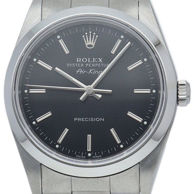 ロレックスの中でもシンプルでオーソドックなデザインが人気の「エアキング」。時計本来の性能を追求し、スタイルを選ばず使用できます。