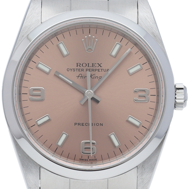 ロレックスの中でもシンプルでオーソドックなデザインが人気の「エアキング」。時計本来の性能を追求し、スタイルを選ばず使用できます。