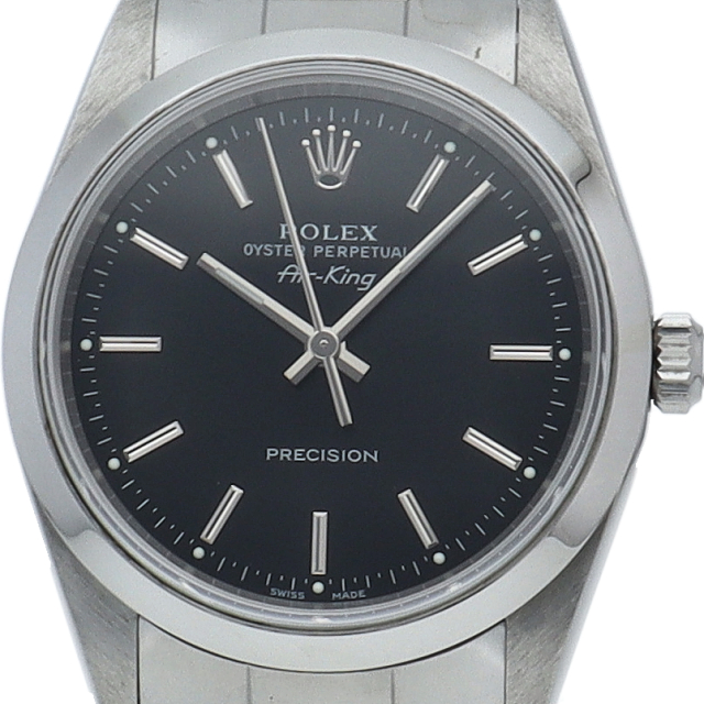 ロレックスの中でもシンプルでオーソドックなデザインが人気の「エアキング」。時計本来の性能を追求し、スタイルを選ばず使用できます。