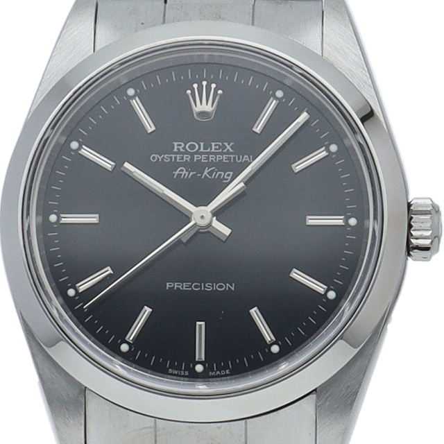 ロレックスの中でもシンプルでオーソドックなデザインが人気の「エアキング」。時計本来の性能を追求し、スタイルを選ばず使用できます。