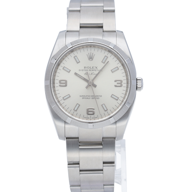 ロレックスの中でもシンプルな3針で時計本来の機能を追求した「エアキング」。すでに廃盤となりましたが、程よいサイズ感が人気のモデルです。