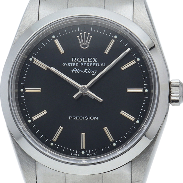 ロレックスの中でもシンプルでオーソドックなデザインが人気の「エアキング」。時計本来の性能を追求し、スタイルを選ばず使用できます。