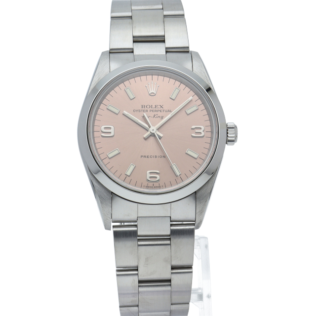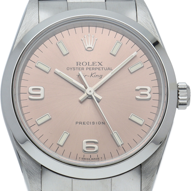 ロレックスの中でもシンプルでオーソドックなデザインが人気の「エアキング」。時計本来の性能を追求し、スタイルを選ばず使用できます。